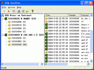 EffeTech ICQ Sniffer - pesan sniffer ICQ, IRC dan pesan email dalam waktu nyata, LAN. Termasuk ARP-spufer memungkinkan mencegat lalu lintas di luar. EtherBoss Monitor (Monitoring ICQ, sebelumnya nama ICQ sapu tangan) adalah utilitas jaringan berguna untuk menangkap dan log chatting dari komputer dalam ICQ LAN yang sama. Mendukung pesan melalui server ICQ dengan format teks biasa, RTF, atau HTML. Semua pesan dicegat terorganisasi dengan baik oleh pengguna ICQ dengan teman-teman dan ditampilkan langsung pada jendela utama. Ini menyediakan fitur yang kaya-sistem laporan untuk ekspor percakapan ICQ ditangkap sebagai file HTML untuk kemudian menganalisis dan referensi.